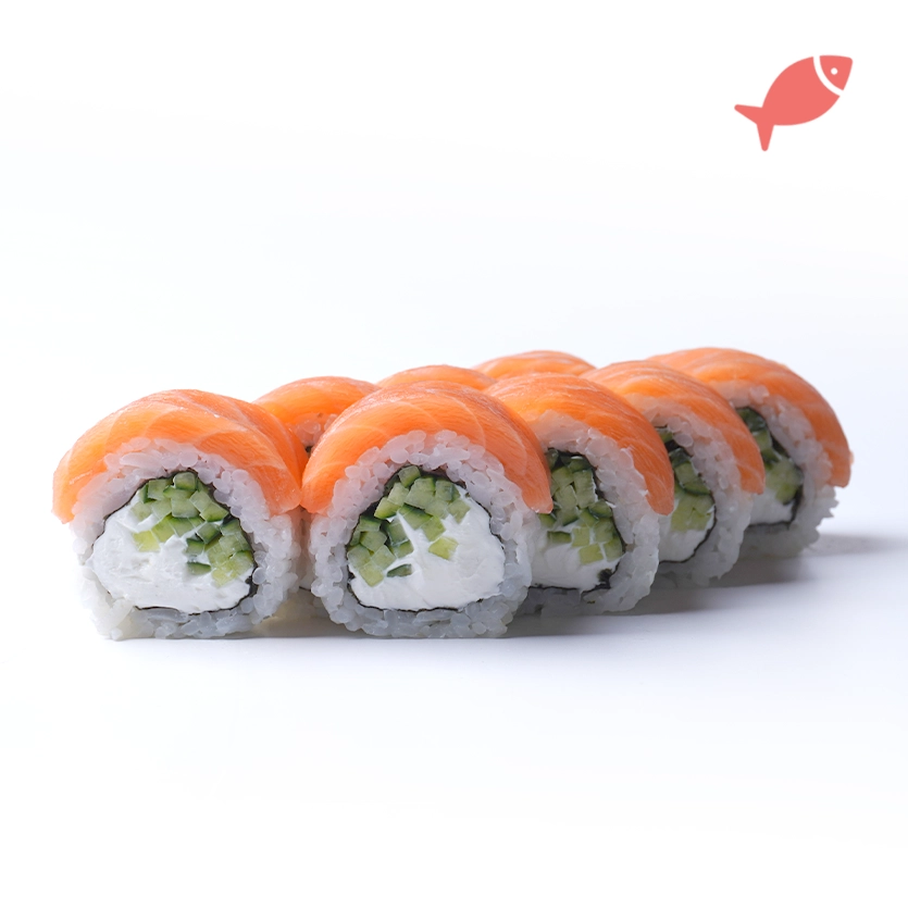 Рис, норі, лосось, крем-сир, огірок, авокадо, масаго.*До замовлення видаємо набір: соєвий соус, палички, імбир та васабі. У кошику можна вказати кількість потрібних наборів.