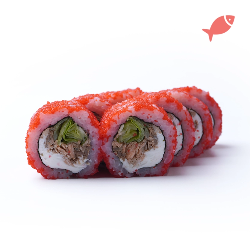 Рис, норі, краб, креветка, авокадо, масаго, соус спайсі.*До замовлення видаємо набір: соєвий соус, палички, імбир та васабі. У кошику можна вказати кількість потрібних наборів.