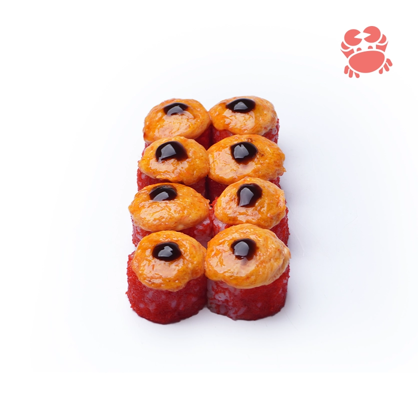 Рис, норі, краб, креветка, авокадо, масаго, соус спайсі.*До замовлення видаємо набір: соєвий соус, палички, імбир та васабі. У кошику можна вказати кількість потрібних наборів.