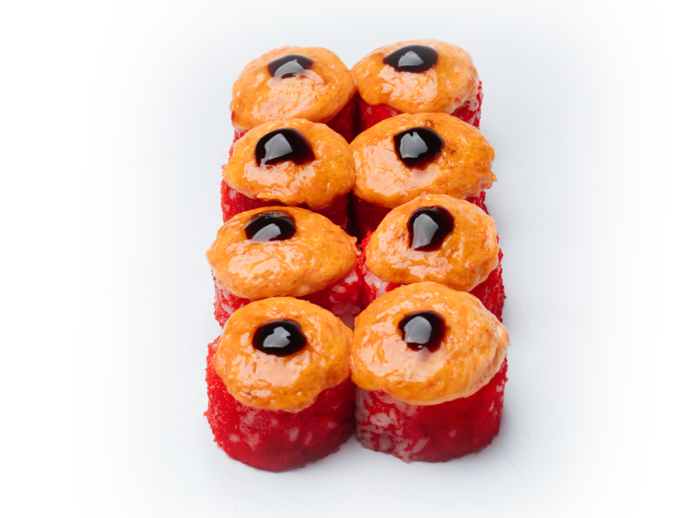 Рис, норі, краб, креветка, авокадо, масаго, соус спайсі.*До замовлення видаємо набір: соєвий соус, палички, імбир та васабі. У кошику можна вказати кількість потрібних наборів.